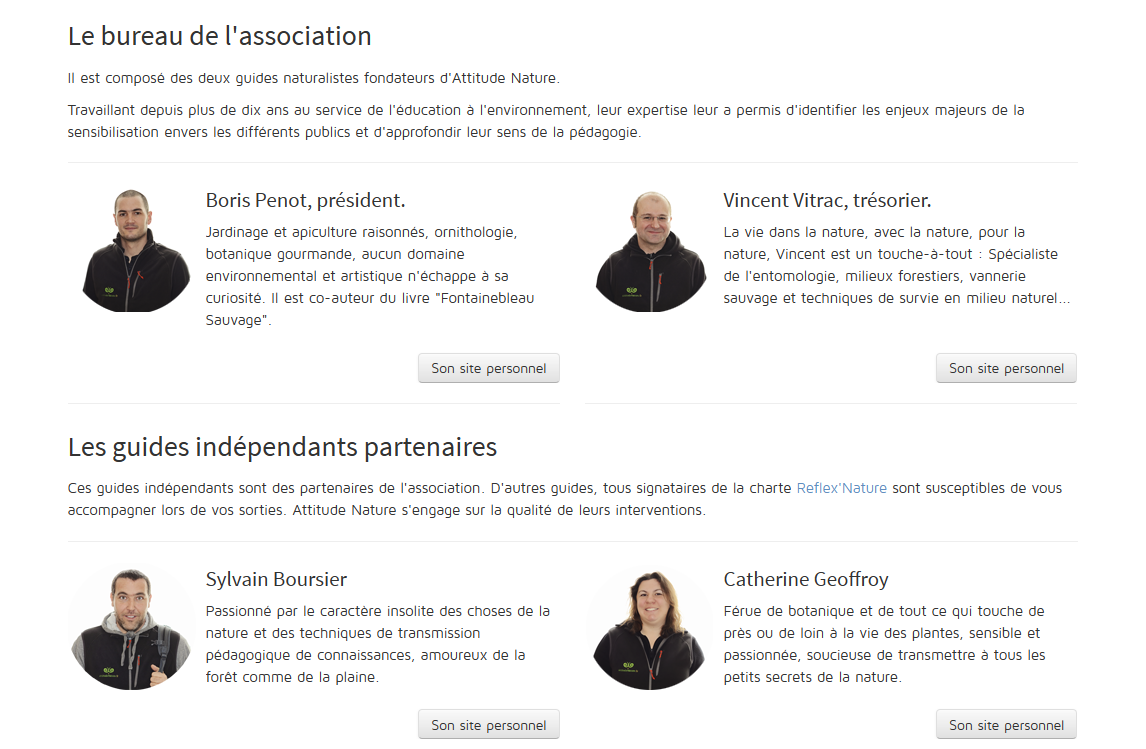 De ces six animateurs, deux sont fondateurs d’Attitude Nature, deux autres sont partenaires exclusifs, et deux autres, partenaires privilégiés.